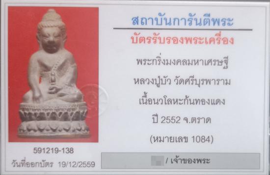 พระกริ่งมงคลมหาเศรษฐี หมายเลข 1084 (เนื้อนวะ-ก้นทองแดง)