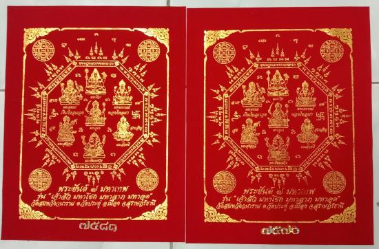 ผ้ายันต์7มหาเทพวัดสมหวังวนาราม ต.วัดประดู่ อ.เมือง จ.สุราษฎร์ธานีรุ่นเจ้าสัว มหาโชค มหาลาภ มหาอุดผ้ากำมหยี่สีแดงขนาด9คูน11นิ้วปลุกเสกณ.โบสพราหมณ์สถานเสาชิงช้า ก.ท.ม.ไม่ผ่านการใช้จำนวน2ผืน |