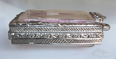 ตลับ (คนขายบอกว่านิกเกิ้ล) ซื้อมา 12 ปีแล้วไม่ลอกไม่ได้ใช้ ขนาด 2.4X3.7 c.m. |