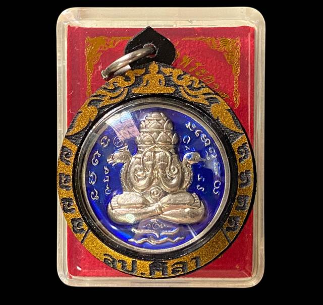 พระปิดตาพังพระกาฬ รุ่น " โชคดี " หลวงปู่ศิลาเมตตาอธิษฐานจิต ณ ธรรมอุทยาน กาฬสินธุ์ ปี 2568 เนื้ออัลปาก้าลงยาน้ำเงิน เลขโค๊ด # 677 พร้อมเลี่ยมกล่องเดิมครับ