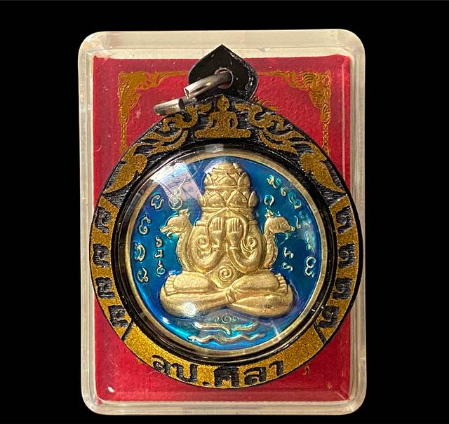 พระปิดตาพังพระกาฬ รุ่น " โชคดี " หลวงปู่ศิลาเมตตาอธิษฐานจิต ณ ธรรมอุทยาน กาฬสินธุ์ ปี 2568 เนื้อกะไหล่ทองลงยาเขียว เลขโค๊ด 2 หลัก # 47 พร้อมเลี่ยมกล่องเดิมครับ