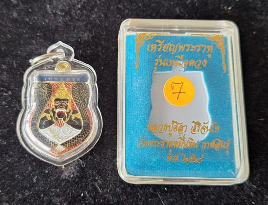 เหรียญพระราหูอมจันทร์ หลวงปู่ศิลา เมตตาอธิษฐานจิต รุ่นเหนือดวง เนื้อทองเหลืองลงยา เลี่ยมกรอบพร้อมใช้ No.7 |