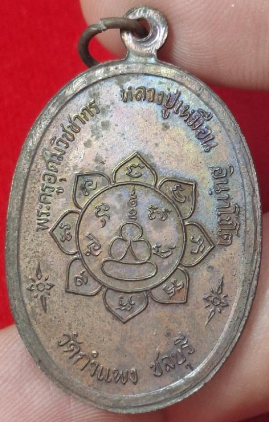 เหรียญหลวงปู่เหมือน วัดกำแพง จ.ชลบุรี ปี2527 เป็นเหรียญเนื้ทองแดง พิมพ์นั่งขาโต๊ะ เหรียญสภาพสวยมากๆบนพื้นผิวเหรียญยังเป็นสีรุ้งอยู่เลยนะครับ |
