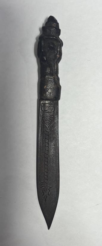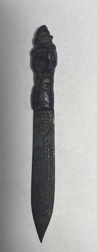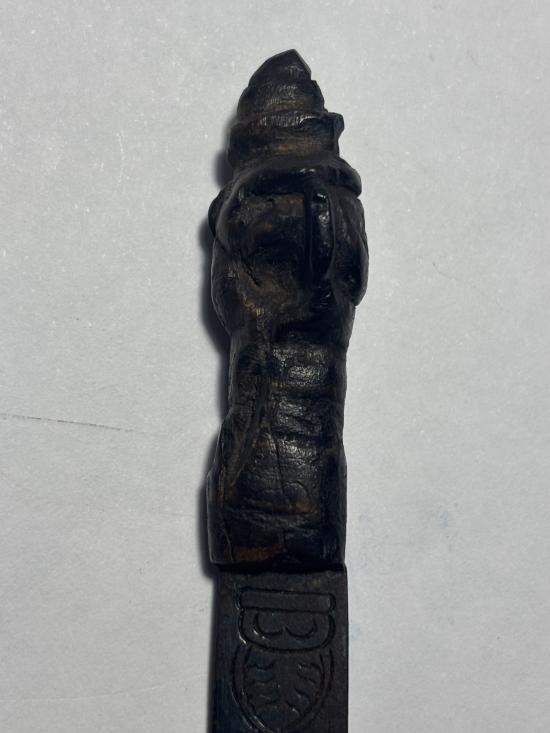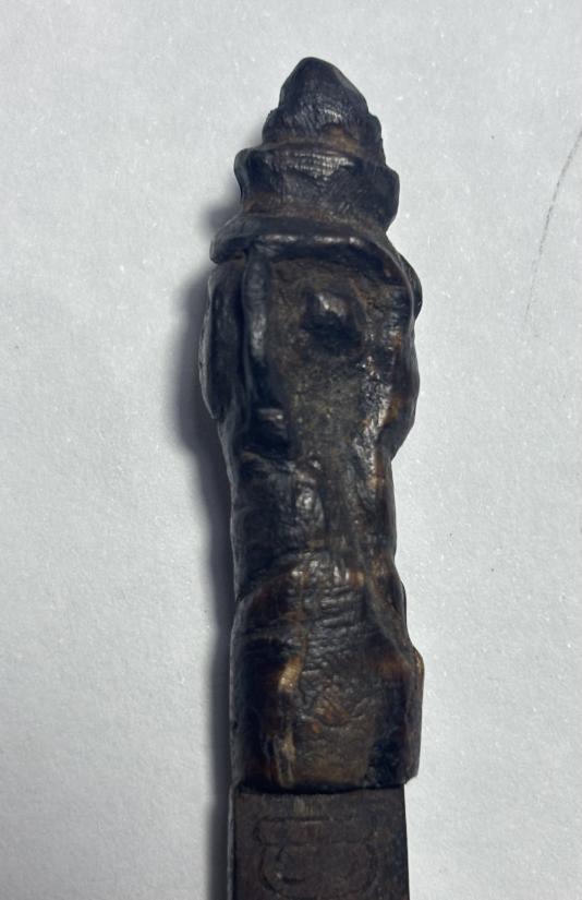 มีดปากกา ด้ามไม้แกะพิฆเนตร เก่าไม่ทราบที่เคาะเดียว |