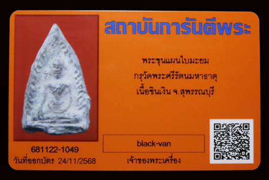 พระขุนแผนใบมะยม เนื้อชินเงิน กรุวัดพระศรีฯ จ.สุพรรณบุรี พร้อมบัตรรับรอง G-pra