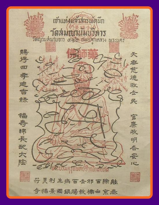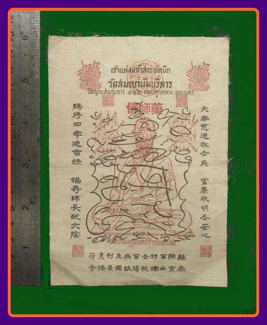 หายาก สุดๆ สวย-1500-ผ้ายันต์แก้วสารพัดนึก ปู่หมอชีวกจโกมารภัทร หลวงพ่อบ่าวเอิง วัดญวนสะพานขาว พศ.2500 |