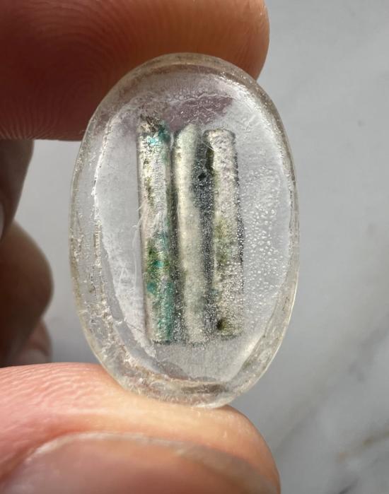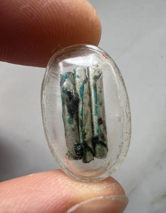 ตะกรุดสาริกาเงิน 3 ดอกติดสีผึ้งเขียว หลวงพ่อทาบ วัดกระบกขึ้นผึ้ง