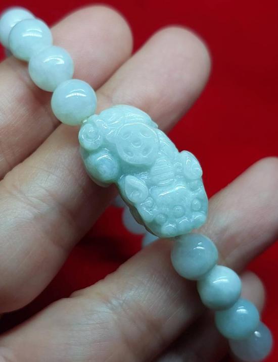 ***วัดใจ***สร้อยข้อมือปี่เซี๊ยะ หินหยกขาว 8 มิล