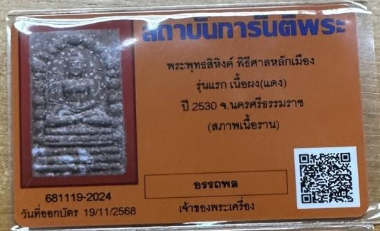 พระพุทธสิหิงค์ พิธีศาลหลักเมือง รุ่นแรก เนื้อผง(แดง) ปี 2530