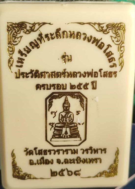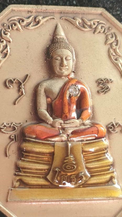 เหรียญแปดเหลี่ยม หลวงพ่อโสธร รุ่นประวัติศาสตร์255ปี วัดโสธรวราราม จ.ฉะเชิงเทรา(วัดสร้าง ซีรี่2) เนื้อทองทิพย์ซาติน ฝังเพชรcz ลงยาจีวร ฐานลงยาเหลือง หมายเลข ๔๕ พร้อมกล่อง เลขผลรวมได้9 น่าสะสมคับ