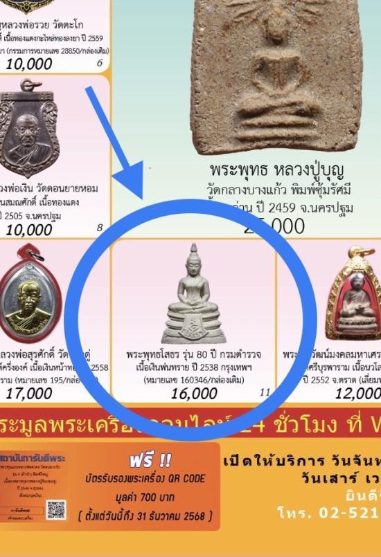 พระพุทธรูป พระพุทธโสธรรุ่นประวัติศาสตร์กรมตำรวจ 80 ปี มีแบบเนื้อสามกษัตริย์ (ทองแดง ทองเหลือง นิกเกิล) หน้าตัก 9 นิ้ว จำนวน 5,000 องค์ พระพุทธโสธร พิมพ์ใหญ่พิมพ์เล็ก เนื้อต่างๆ และพระพุทธโสธร ทรงแปดเหลี่ยม เนื้อต่างๆ จำนวนมาก