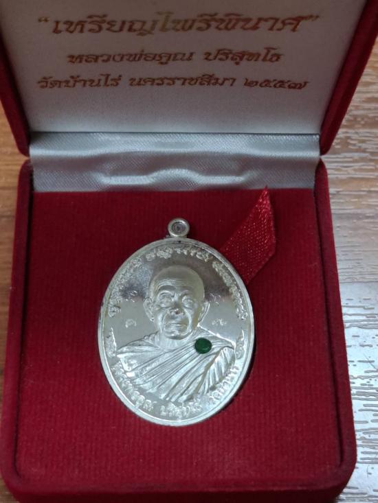 !!!เคาะเดียวแดง เหรียญหลวงพ่อคูณ ไพรีพินาศ เนื้อเงิน ฝังมรกต เลข 92 พร้อมกล่องเดิมครับ