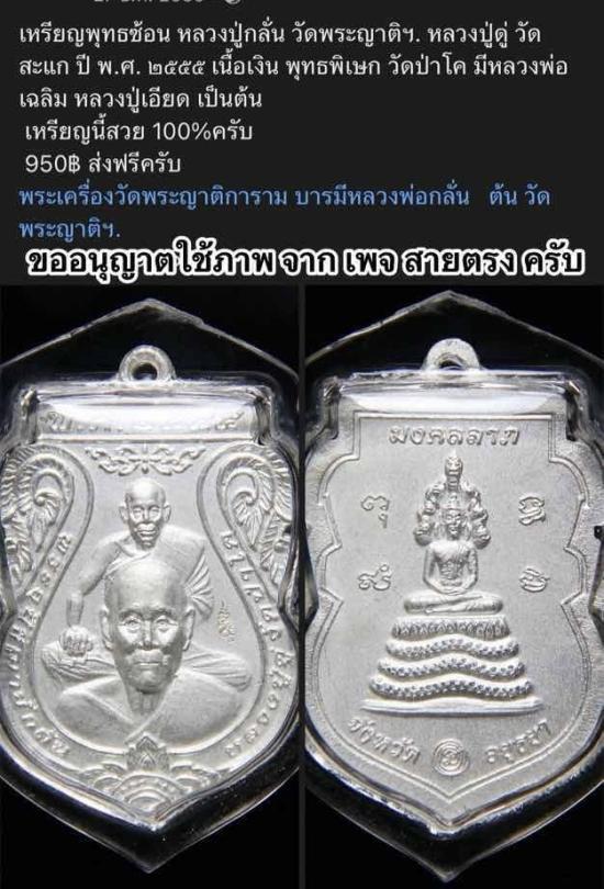 200.- ems เหรียญพุทธซ้อน หลวงพ่อกลั่น วัดพระญาติ - หลวงปู่ดู่ วัดสะแก ปี 2555 ออกวัดป่าโค จ.อยุธยา เนื้อชุบเงิน (กรรมการ) หลวงพ่อรวย วัดตะโก , เพิ่ม วัดป้อมแก้ว , พูน วัดบ้านแพน ร่วมเสก ตอกโค๊ด ชัดเจน