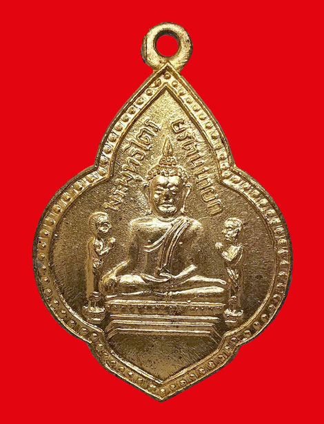 เหรียญพระพุทธไตรยรัตนนายก วัดพนัญเชิง พิมพ์วงเดือน เนื้อทองแดงกะไหล่ทอง ปี 2504 |