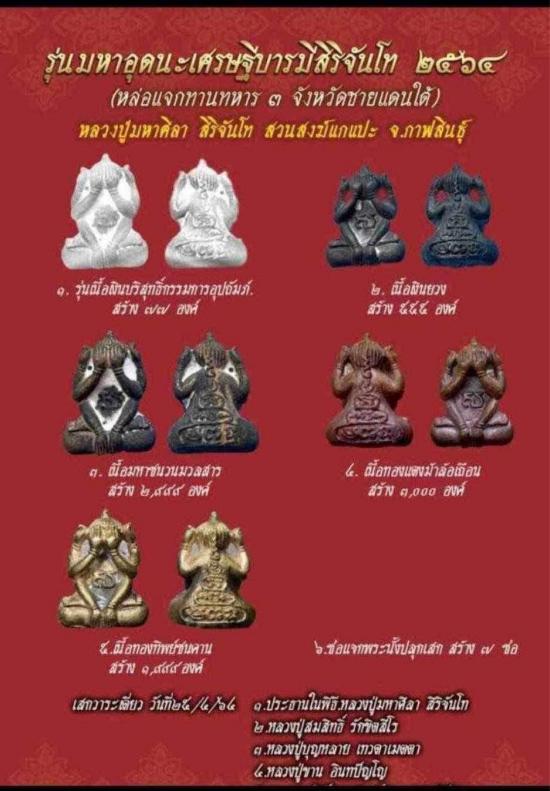 ชื่อพระเครื่อง เครื่องรางของขลัง ยุคต้นปี 64 หล่อแจกทหาร 3 ชายแดนใต้ พระปิดตาทวาร หลวงปู่มหาศิลา สิริจันโท เนื้อทองทิพย์ no.649