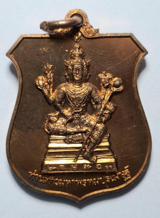 เหรียญท้าวมหาพรหมปรเมษฐ์ เจ้าคุณธงชัย วัดไตรมิตร ปี 2543 หลังยันต์พรหมสี่หน้า เนื้อทองแดง สวยมาก