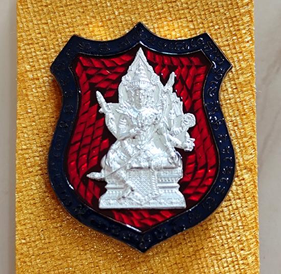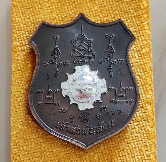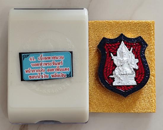 เหรียญท้าวมหาพรหม รุ่นเจ้าสัวพันล้าน(บอย ท่าพระจันทร์) เนื้อมหาชนวนลงยาพื้นเเดงขอบน้ำเงิน หน้า-หลังหน้ากากเงินแท้ โค๊ตนำฤกษ์ No.๑๖๖ พร้อมกล่องเดิม (สร้าง 198 เหรียญ)