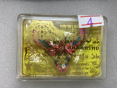 ชื่อพระเครื่อง เคาะเดียวแดง 150 พญาครุฑมังรายศาสตร์ เศรษฐีอนันตทรัพย์ พระอาจารย์วิรุต วัดสันมะเหม้า จ.เชียงราย เนื้อชนวนทองขาว ลงยาองค์ชมพู สูง 4 ซ.ม. พิมพ์ใหญ่ กล่องเดิม