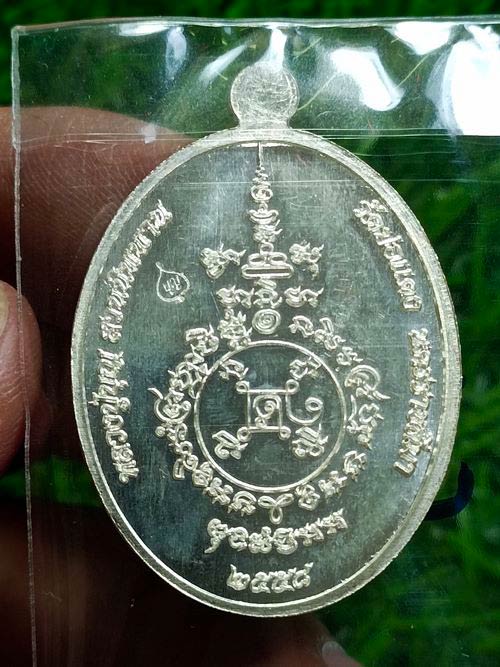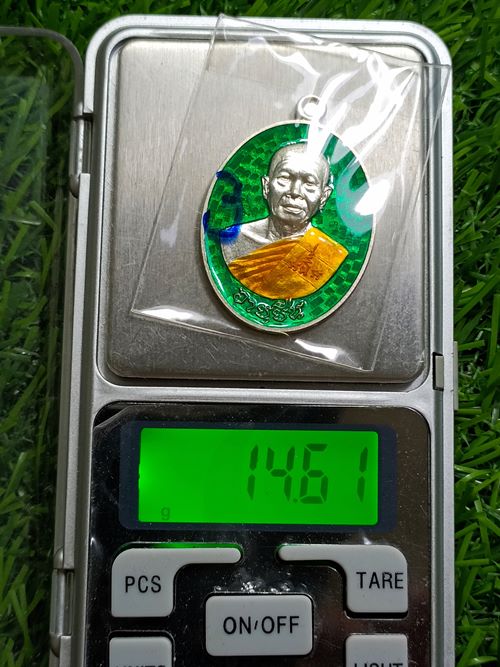 ชื่อพระเครื่อง " วัดใจ เคาะเดียวแดง " เหรียญอายุยืน ฉลองอายุ 80 พรรษา หลวงปู่บุญ ปริปุนณสีโล วัดปอแดง (สวนนิพพาน) จ.นครราชสีมา ปี 2558 เนื้อเงิน ลงยาสีเขียว หมายเลขตัวเดียว 3 (น้ำหนักโดยประมาณ 14.xx กรัม)
