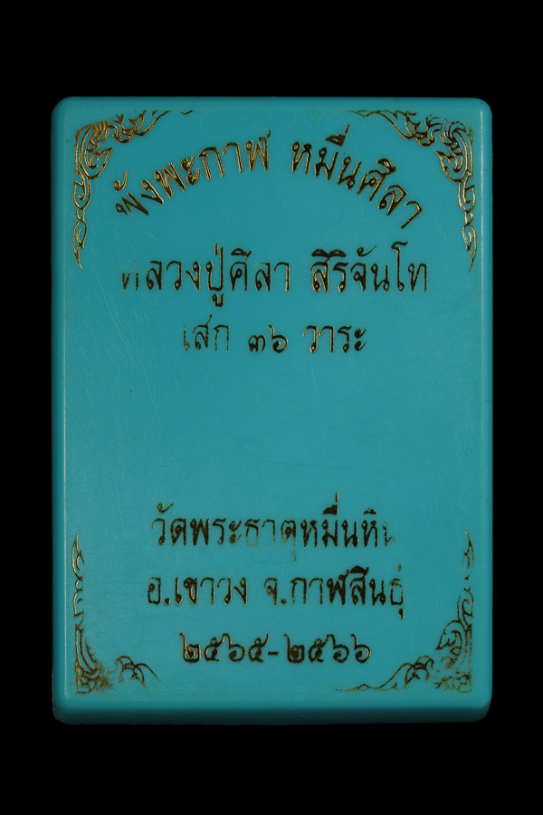 ชื่อพระเครื่อง เหรียญ ปิดตาพังพระกาฬ หมื่นศิลา ปลุกเสก36วาระ หลวงปู่มหาศิลา หลวงปู่ศิลา สิริจันโท วัดพระธาตุหมื่นหิน จ.กาฬสินธุ์ เนื้อทองแดง เลข ๖๐๓๗ มีกล่องเดิม