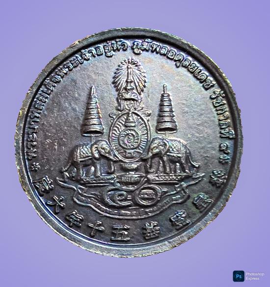 --เป็น ตราสัญลักษณ์การจัดงานเฉลิมฉลองครองราชย์ครบ 50 ปี ด้านบนมีภาษาไทยคำว่า พระบาทสมเด็จพระเจ้าอยู่หัว ภูมิพลอดุลยเดช รัชกาลที่ 9