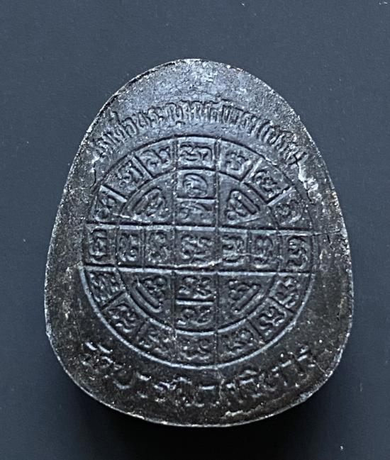 พระปิดตายันต์ดวงเล็ก ปี2523 สมเด็จพระญาณสังวร (เจริญ) วัดบวรนิเวศ_(เนื้อผงใบลานดำปลดหนี้)_พิมพ์หนา_