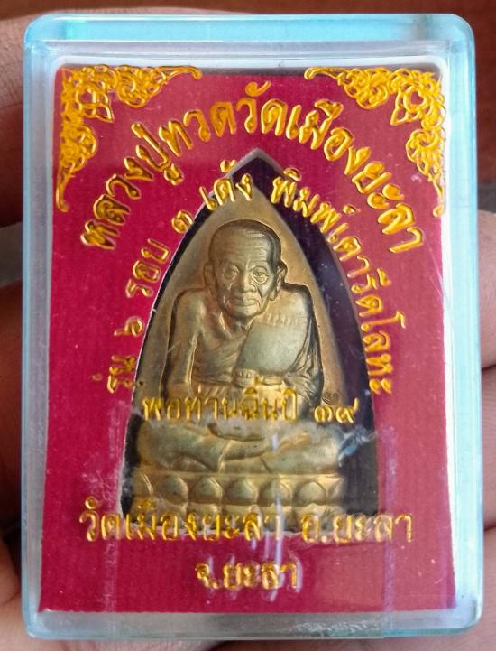 หลวงปู่ทวดวัดเมืองยะลา รุ่น 6 รอบ 3 เด้ง พิมพ์เตารีดโลหะ พ่อท่านฉิ้น ปี 39 วัดเมืองยะลา พร้อมกล่องเดิม