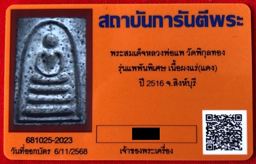 พระสมเด็จหลวงพ่อแพ วัดพิกุลทอง รุ่นแพพันพิเศษ ( เนื้อผงแร่แดง ) ปี 2516 จ.สิงห์บุรี สภาพสวยเดิม ผิวเดิมๆ มาพร้อมบัตรรับรองครับ