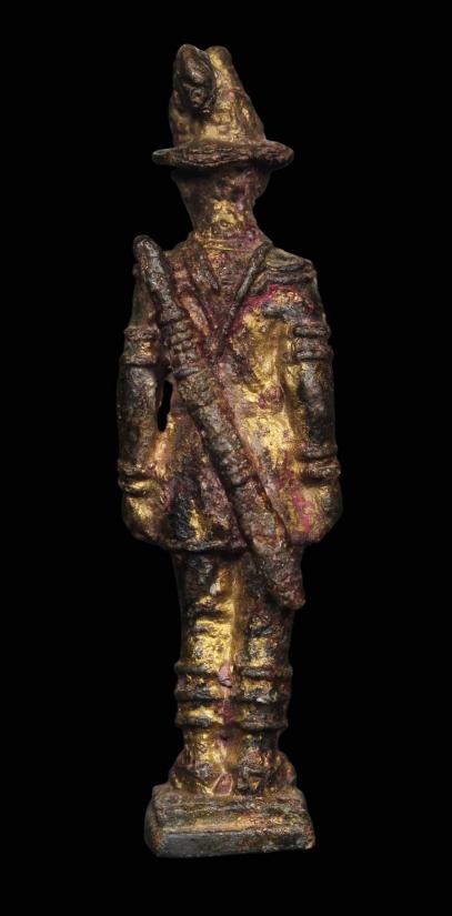รูปหล่อทรงยืนสมเด็จพระเจ้าตากสินมหาราช หลวงปู่ทิม วัดละหารไร่ ปี2518 เนื้อตะกั่วลงกรุ |