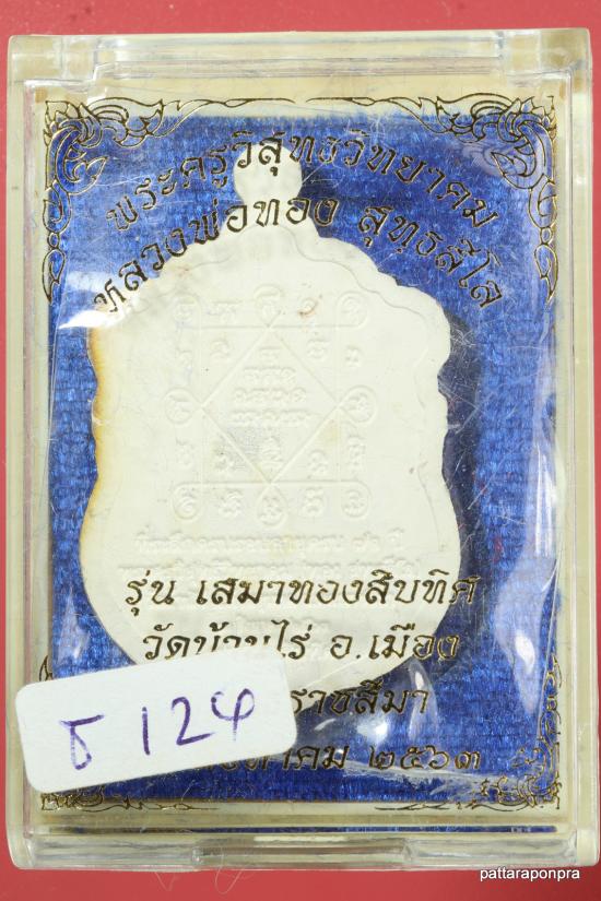 เหรียญเสมาหลวงพ่อทอง รุ่นทองสิบทิศ ปี 2563 เนื้อเงินลงยาสีธงชาติ หน้าทองคำ หมายเลข 124 |