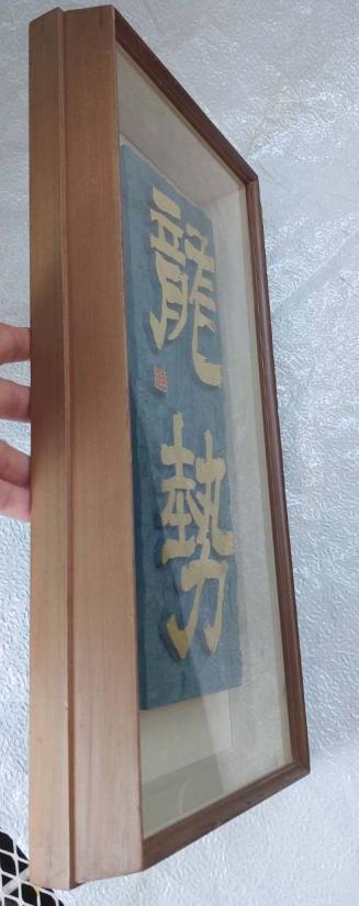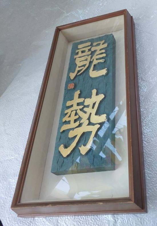 กรอบแสดงการประดิษฐ์ตัวอักษรจีน (พู่กันจีน) คำว่า "龍勢" (ออกเสียงว่า "หลงซื่อ" ในภาษาจีนกลาง) ซึ่งมีความหมายว่า "พลังอำนาจของมังกร" หรือ "กระแสพลังมังกร" ซึ่งมักใช้เพื่ออวยพรให้ประสบความสำเร็จหรือมี