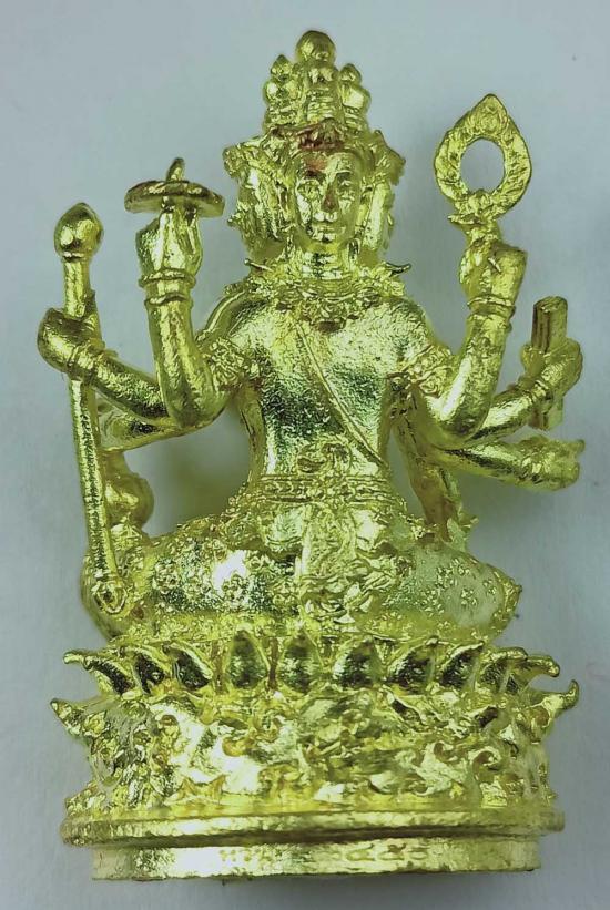 รายละเอียด พระพรหมบันดาลโชค หลวงพ่อหวั่น กุสลจิตฺโต วัดคลองคูณ เนื้อทองทิพย์ ฝังตะกรุด มวลสาร เบอร์ 2450 พร้อมกล่องครับ