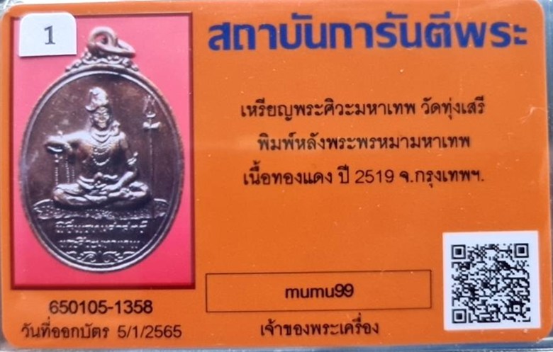 ## เหรียญพระศิวะมหาเทพ หลังพระพรหม...พิธีพรหมศาสตร์ ปี 2519 อาจารย์ชุม ไชยคีรี ออกที่ วัดทุ่งเสรี หัวหมาก พิธีเดียวกับ ศิวะลึงค์ และ มีดหมอ รุ่นแรก ของท่าน พิธีใหญ่มาก พร้อมบัตรรับรอง ....(อ.ชุม ไชยคี