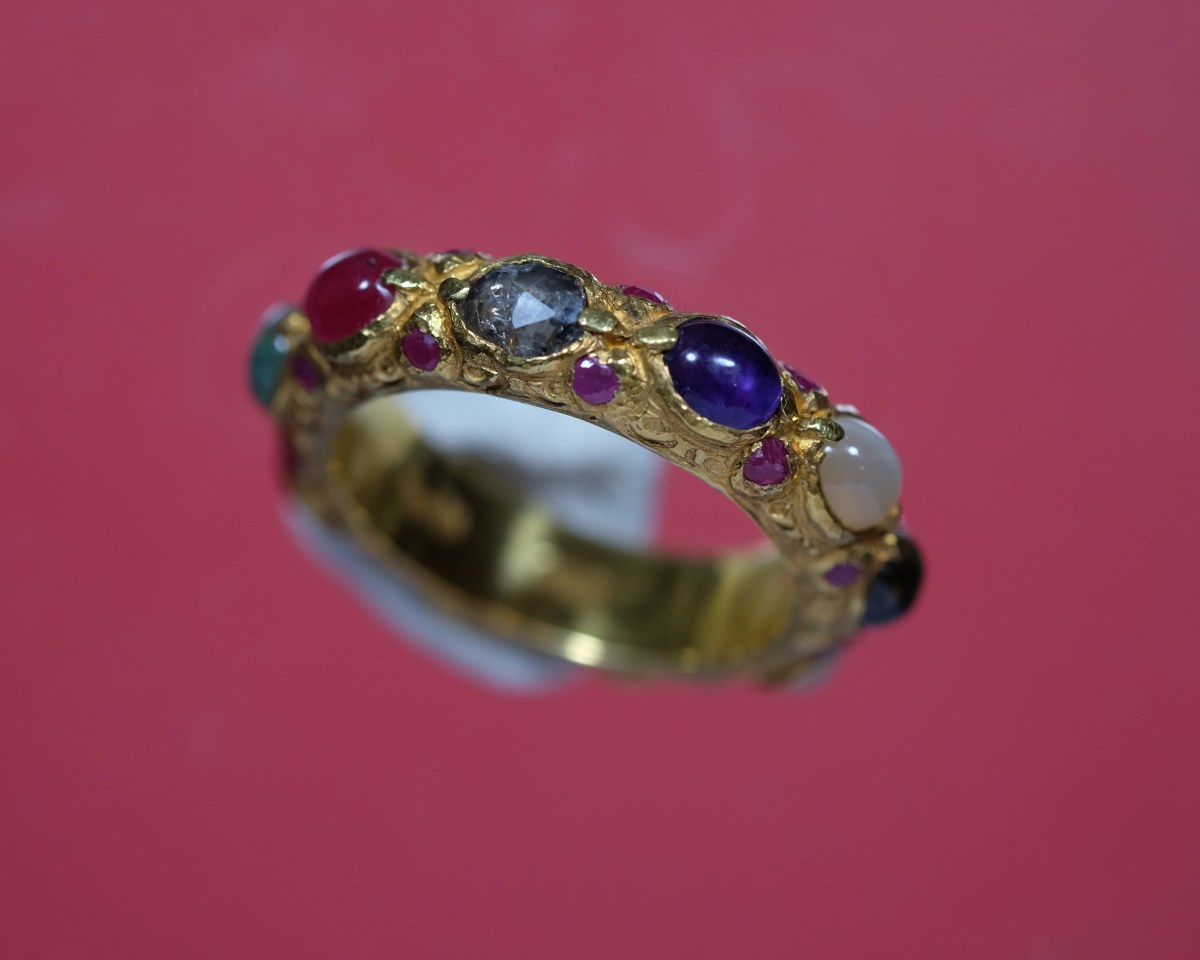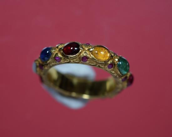 แหวนนพเก้าไทยรุ่ง ทอง 90% น้ำหนัก 8.35 กรัม นพเก้าครบตามตำรางานเก่าสวย ขนาดแหวน 62