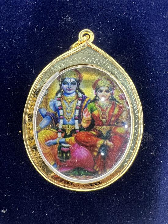 หน้ากากชุบทองคำแท้ หลังองค์พระนารายณ์ พระแม่ลักษมี เลี่ยมกรอบไมครอน