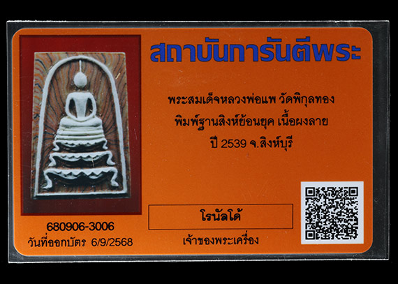 พระสมเด็จ หลวงพ่อแพ วัดพิกุลทอง พร้อมบัตรรับรองจากเว็บ