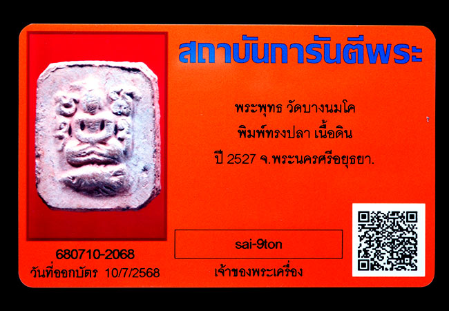 หลวงพ่อปาน วัดบางนมโค พิมพ์ขี่ปลา ปี.27 ...........................800 |