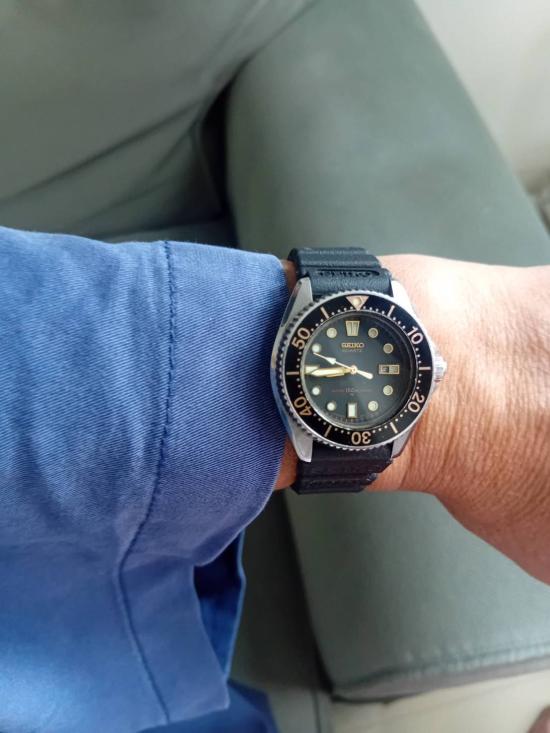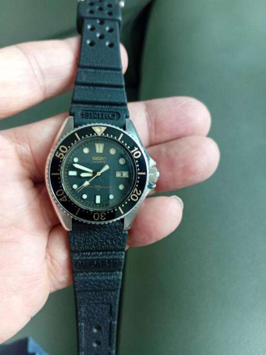 นาฬิกาดำน้ำ Seiko 2625-0010 Mini Diver Vintage Quartz Watch Black Dial ขนาดหน้าปัด 33 มม เรือนขนาดบอยไซค์ พร้อมสายซิลิโคน หน้าปัดสีดำ ตัดสีทองสวย ขนาดสายยาว 18 ซม สายแท้ seiko มีตรา ปรับสายได้ |