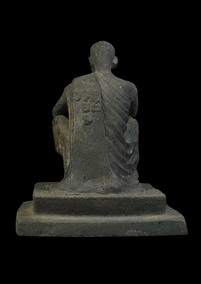 พระบูชารูปเหมือนนั่งยอง ( ฐานกว้าง 4 นิ้ว สูง 4.5 นิ้ว เข่าก ว้าง 2.5 นิ้ว ) เนื้อโลหะรมดำ ผิวหิ้ง ) พ.ศ.2537