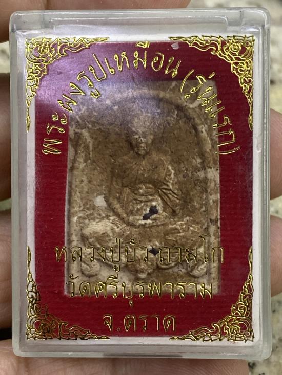 หลวงปู่บ้ว รุ่นพระผงรูปเหมือน (รุ่นแรก ) ฝังพลอย วัดเกาะตะเคียน ( ศรีบุรพาราม ) หมายเลข1498 ใบหน้าชัด กล่อง |