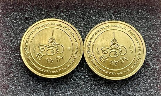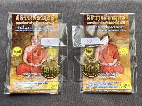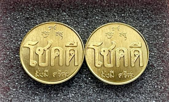 เหรียญ "โชคดี" วัดพระพุทธเมตตา พระครูบาวชิริล วัดเดิมบาง เมตตาเขียนยันต์ต้นแบบเหรียญ เลขสุดสวย (จัดชุด 2 เหรียญ) 1