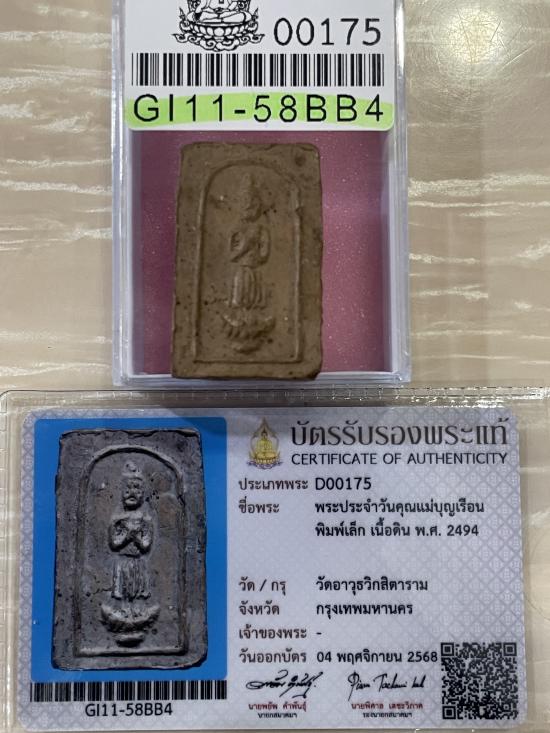 (เคาะแดง3900) +บัตรสมาคม พระประจำวันหลังยันต์ คุณแม่บุญเรือน