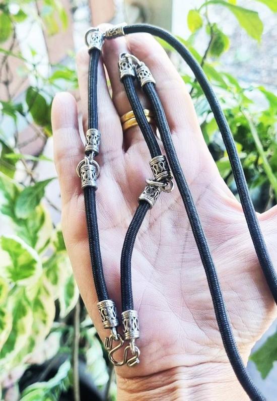 สร้อยคอคล้องพระเชือกร่ม (ไซส์ใหญ่ ) ตอกหมุดแบบลายหนาแน่น คล้องพระได้ 5 องค์ ขนาดเชือกร่มอย่างหนา 4 มิล ตะขอแข็งแรงทนทาน ( ของใหม่ ) |