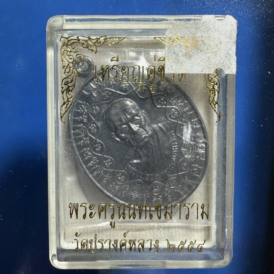 เหรียญคู่ชีวิต เนื้อตะกั่ว หลวงปู่หยุด วัดปรางค์หลวง จ.นนทบุรี ปี 2554 |