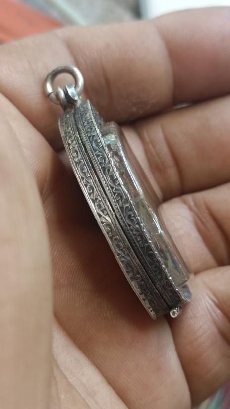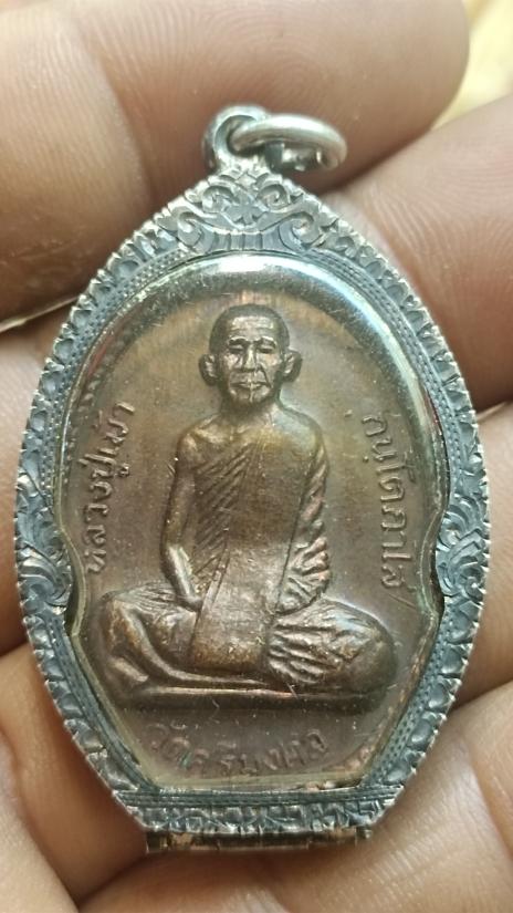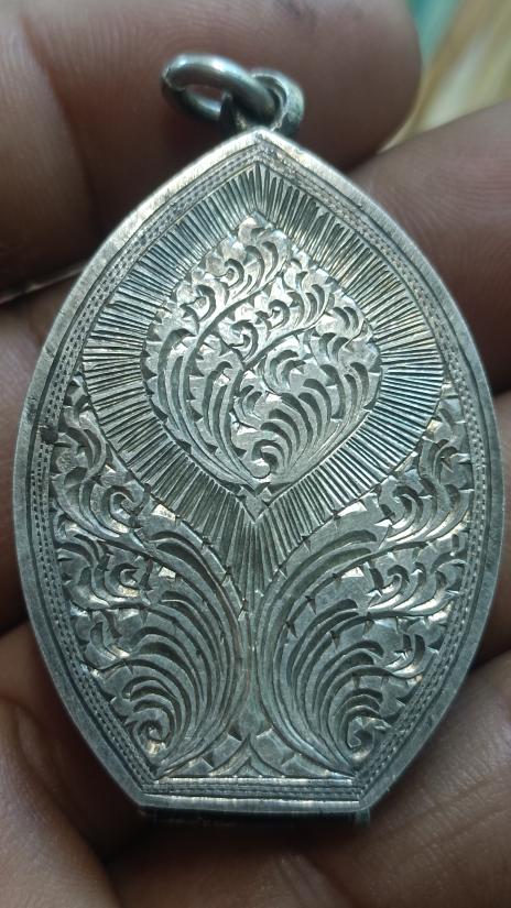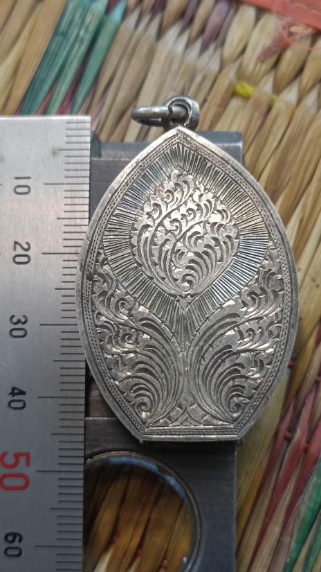ตลับเงินแกะลายปิดหลังแถมพระเหรียญหลวงปู่เม้า วัดศรีมงคลปี 2521