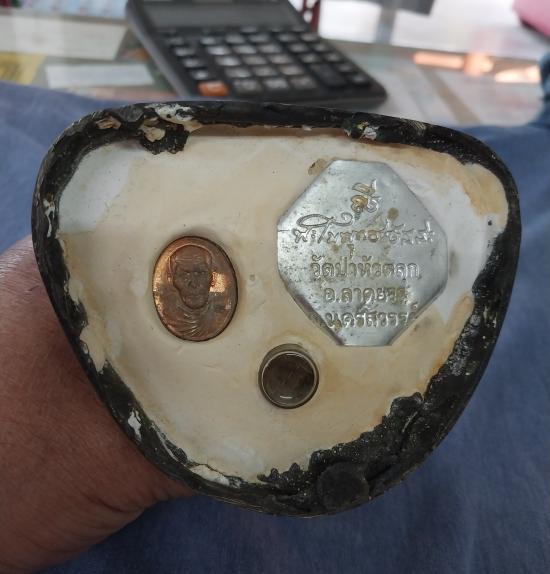รุ่นสร้างกำแพง ใต้ฐานบรรจุเหรียญ แผ่นเงิน และเส้นเกศา หน้าตัก(เข่าถึงเข่า) 3 นิ้ว ฐาน 4นิ้ว