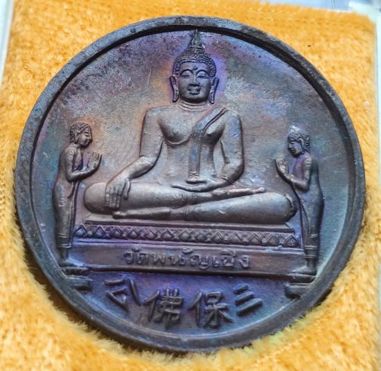 เหรียญหลวงพ่อโตวัดพนัญเชิงเนื้อทองแดงรุ่นสมปรารถนาปี 2537 จังหวัดพระนครศรีอยุธยา(กล่องเดิม)ตอกโค๊ต |