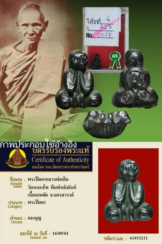 พระปิดตาหลวงพ่อเดิม วัดหนองโพ พิมพ์หลังยันต์ เนื้อเมฆพัตร (เลี่ยมกันน้ำพร้อมใช้) >> แบ่งปัน เคาะเดียว!!! |