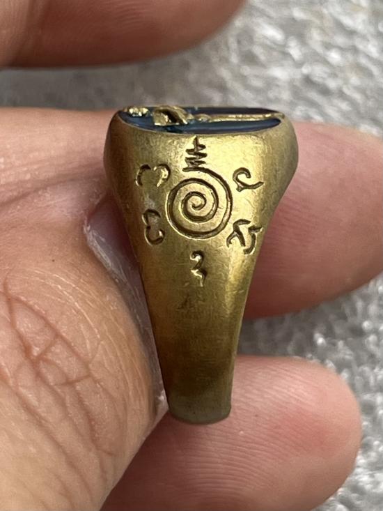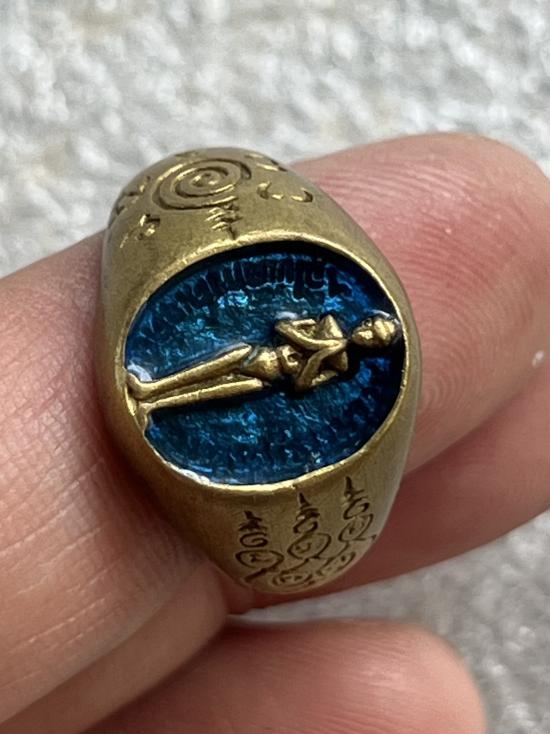 แหวนไอ้ไข่ หลังยันต์ ทองเหลืองลงยา ไม่ทราบรุ่น