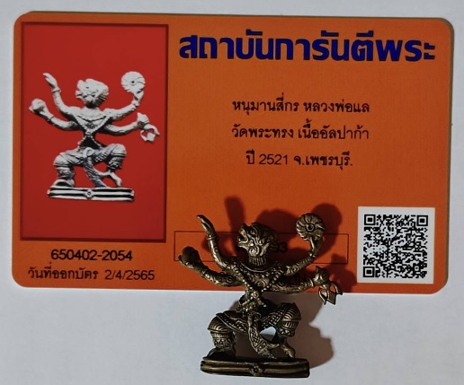 หนุมานหล่อโบราณ 4 กร เนื้ออัลปาก้า หลวงพ่อแล วัดพระทรง จ.เพชรบุรี ปี 2521